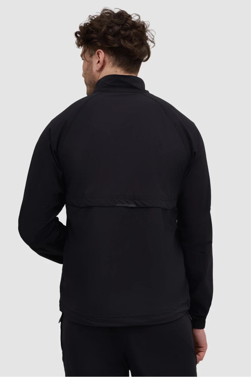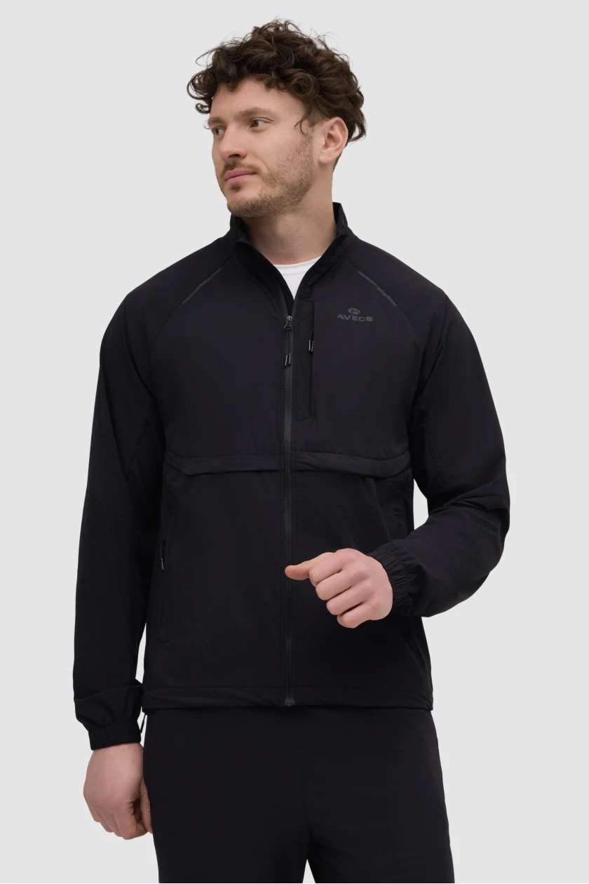 Куртка-вітровка: Чорна модель на блискавці з коміром-стійкою. Має мінімалістичний дизайн, еластичні манжети та прихований логотип.